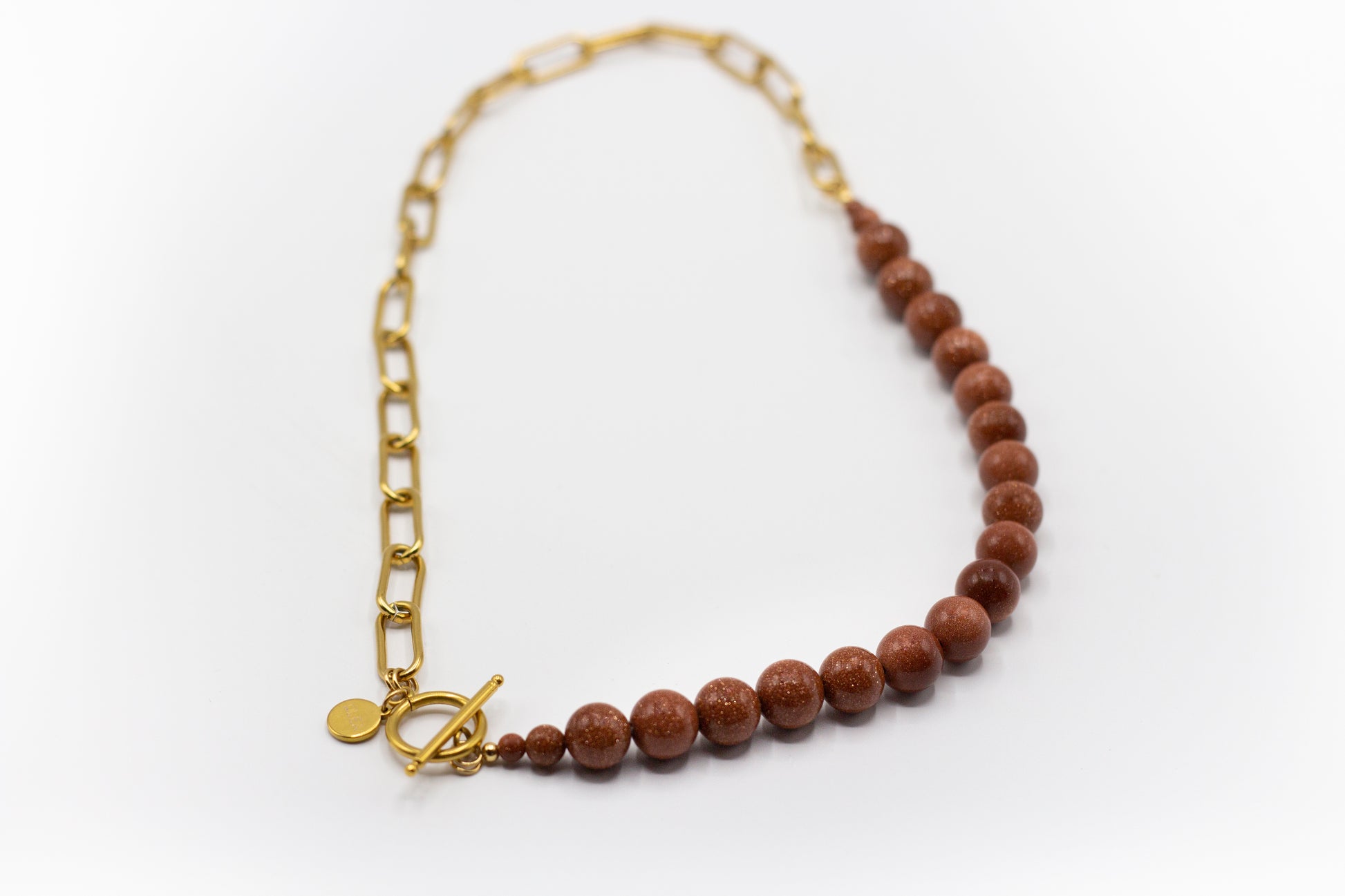 Halskette aus vergoldetem Edelstahl und natürlichem Aventurinstein.