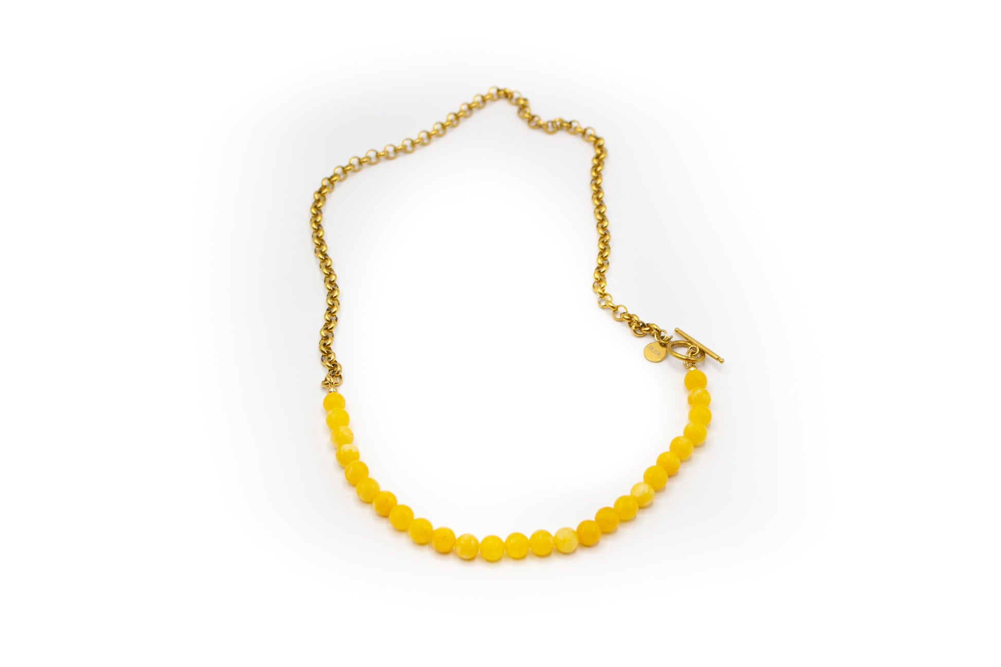 Collar mitad cadena acero inoxidable color oro con piedra natural ágata amarilla