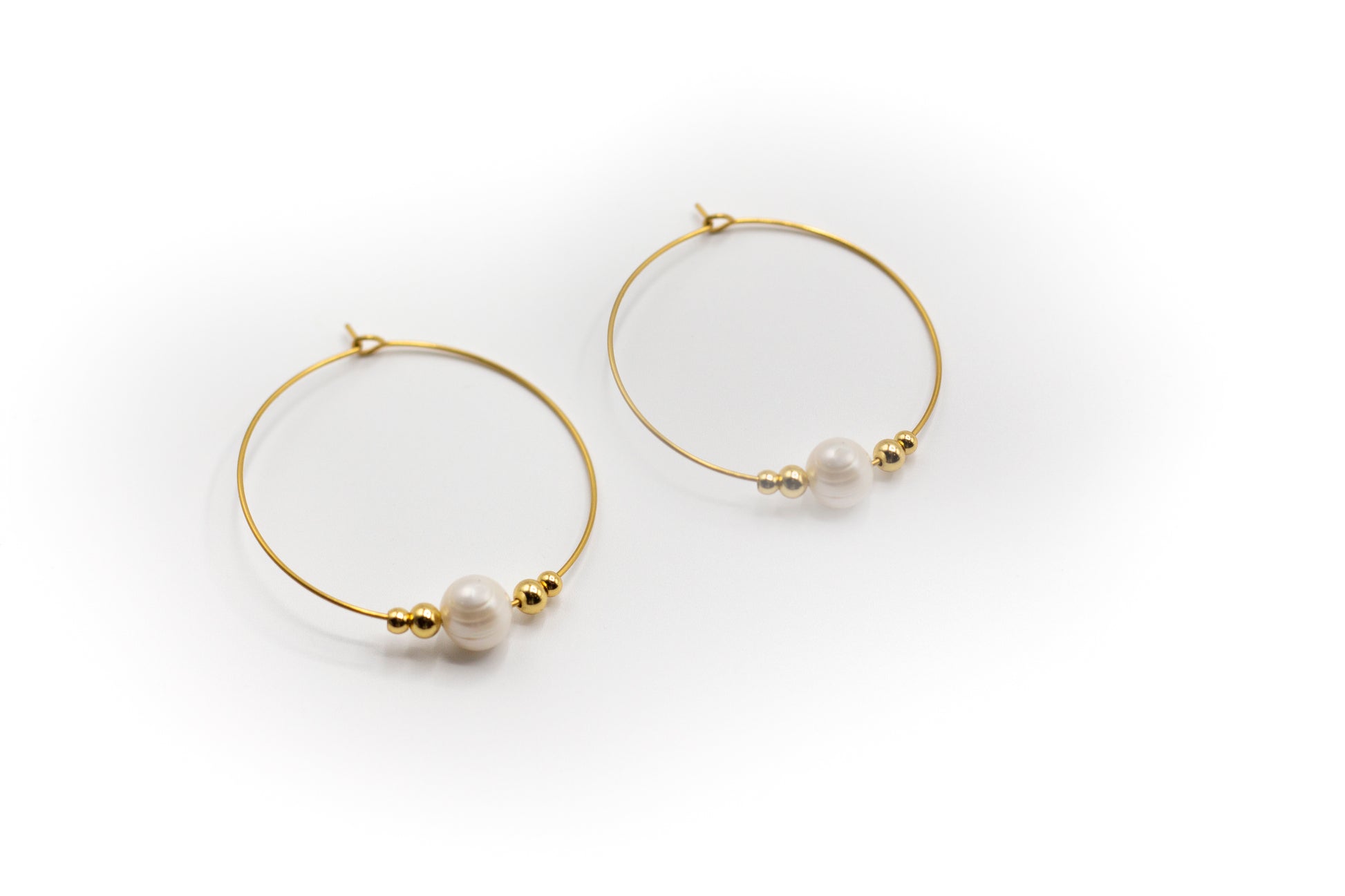 Goldfarbene Creolen aus Edelstahl mit Naturperle
