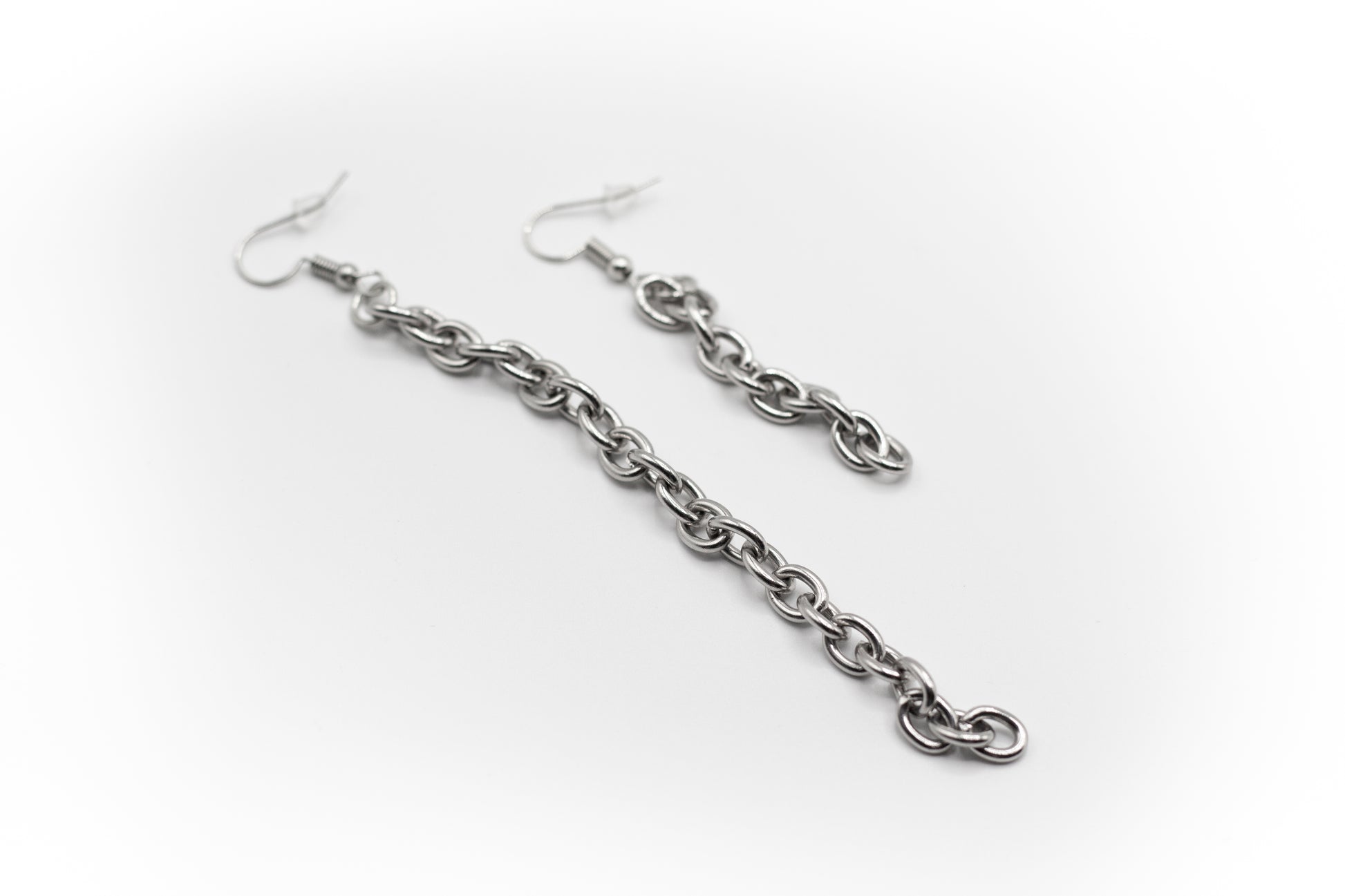 ungleichmäßige Hakenohrringe mit silberfarbener Edelstahlkette