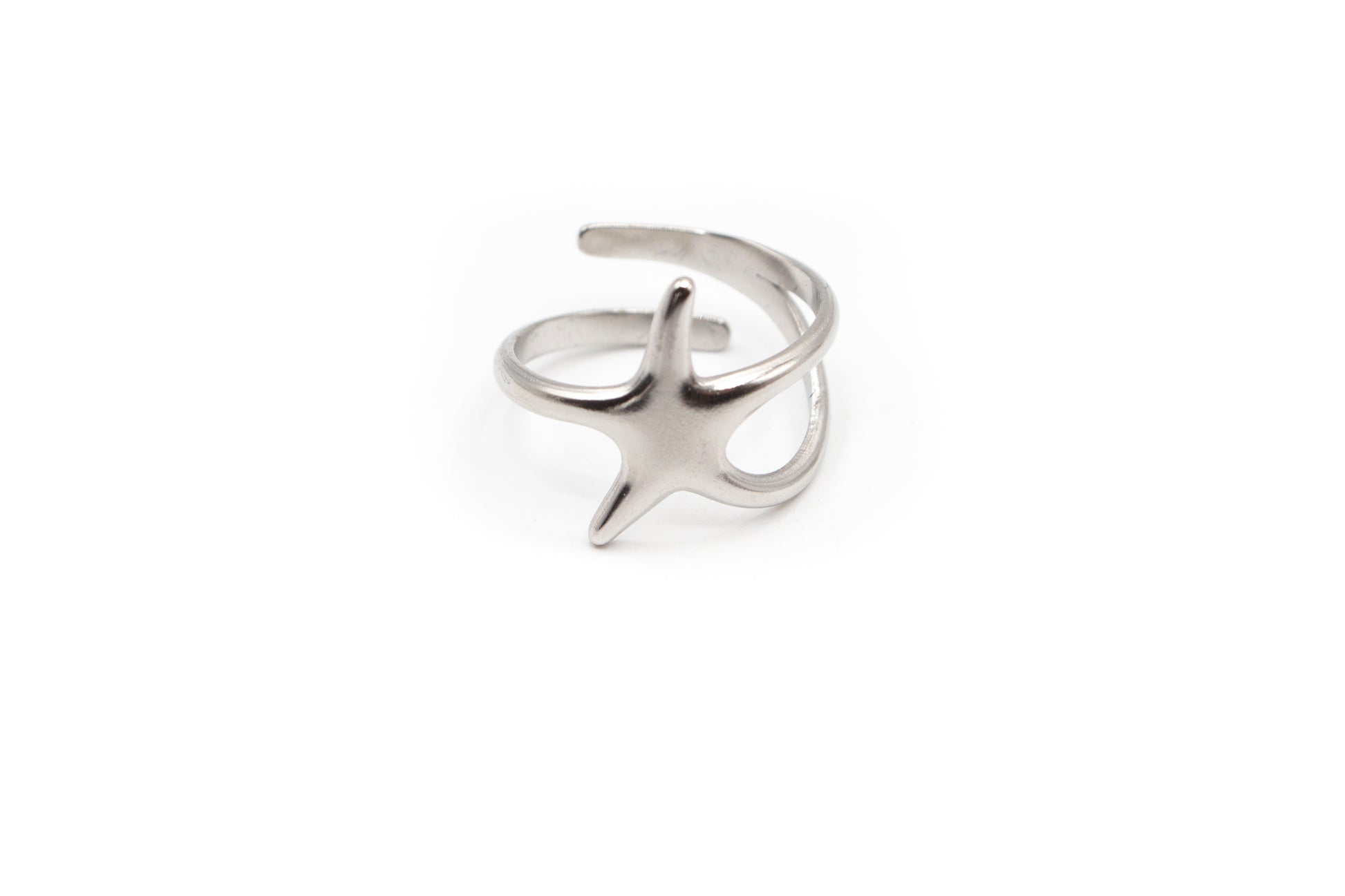 Este anillo ajustable de acero inoxidable presenta un diseño elegante con una estrella de mar, simbolizando conexión con la naturaleza y el mar. Su estructura ajustable garantiza un ajuste cómodo y seguro para diferentes tamaños de dedo. Fabricado en acero inoxidable, ofrece resistencia a la corrosión y durabilidad, manteniendo su brillo y acabado con el uso diario. Ideal para quienes buscan una pieza versátil que combine estilo y resistencia.