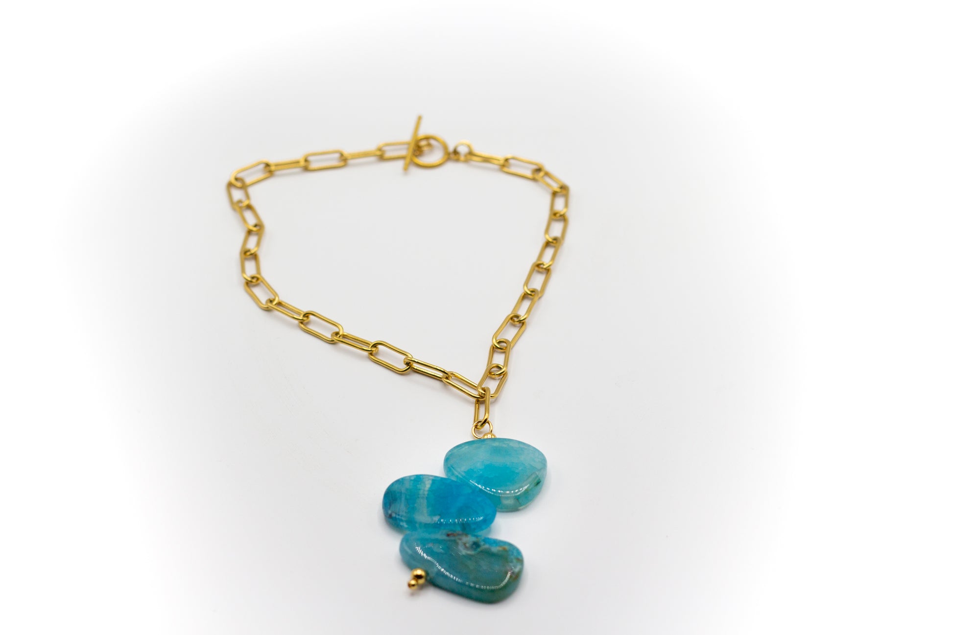 Collar Mediano Acero Inoxidable Color Oro y 3 Piedras Naturales de Ágata Azul